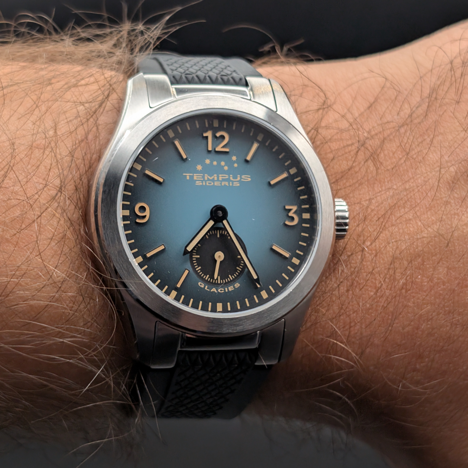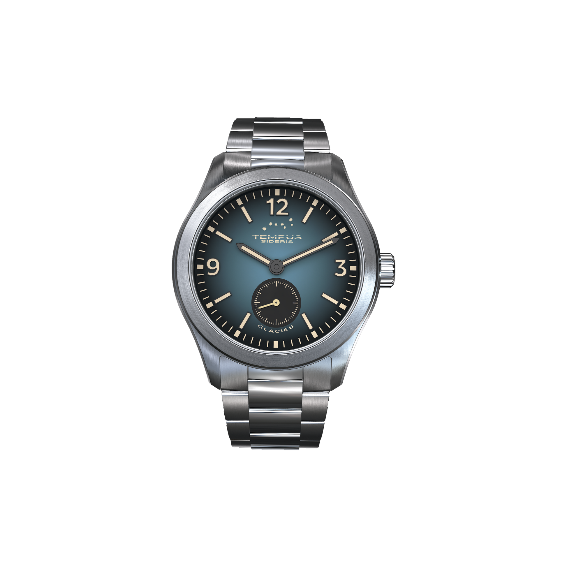 Il quadrante Glacies è un tributo al ghiaccio nella sua forma più cosmica, dalle comete che trasportano segreti antichi attraverso lo spazio profondo ai ghiacciai che scolpiscono i mondi. Il quadrante blu ghiaccio, con la sua delicata texture cristallina, evoca la superficie ghiacciata del nucleo di una cometa nel suo viaggio attraverso il vuoto. È un orologio per chi è affascinato dal tempo profondo e dai misteri del cosmo.