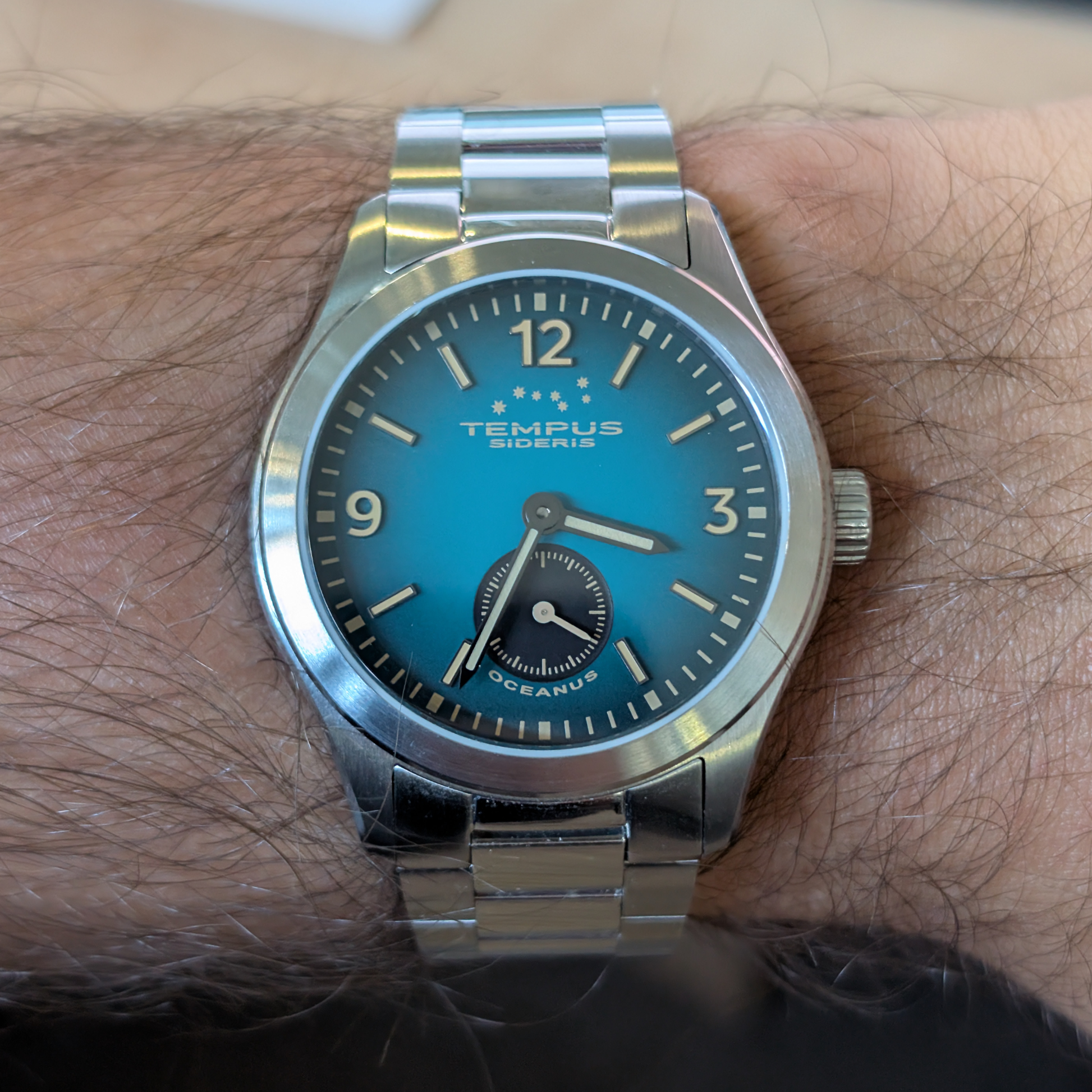 Il quadrante Oceanus è un tributo alla culla della vita, all'abisso misterioso che ci collega alle nostre origini più profonde. Il quadrante è di un blu profondo e saturo, un colore che racchiude sia la calma della superficie sia il mistero delle profondità. È un orologio che ci ricorda che ogni tempo, per noi, è iniziato nell'acqua.