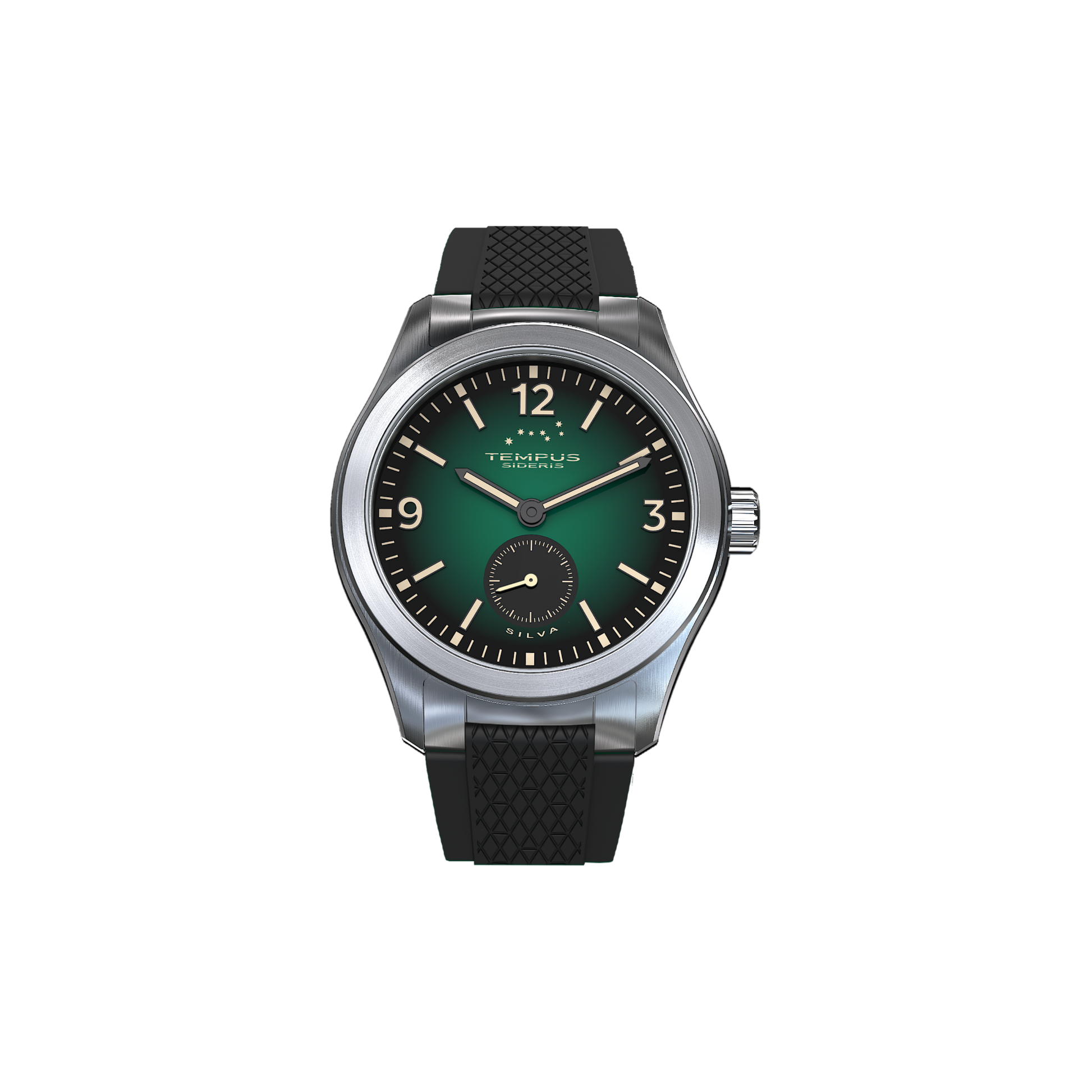 The Silva model captures the essence of an ancient forest, a place of quiet reverence where the earth connects with the cosmos. The dial is a deep and vibrant green, evoking the color of moss and the densest canopy. It is an invitation to lose oneself in nature to rediscover one's place in the universe.